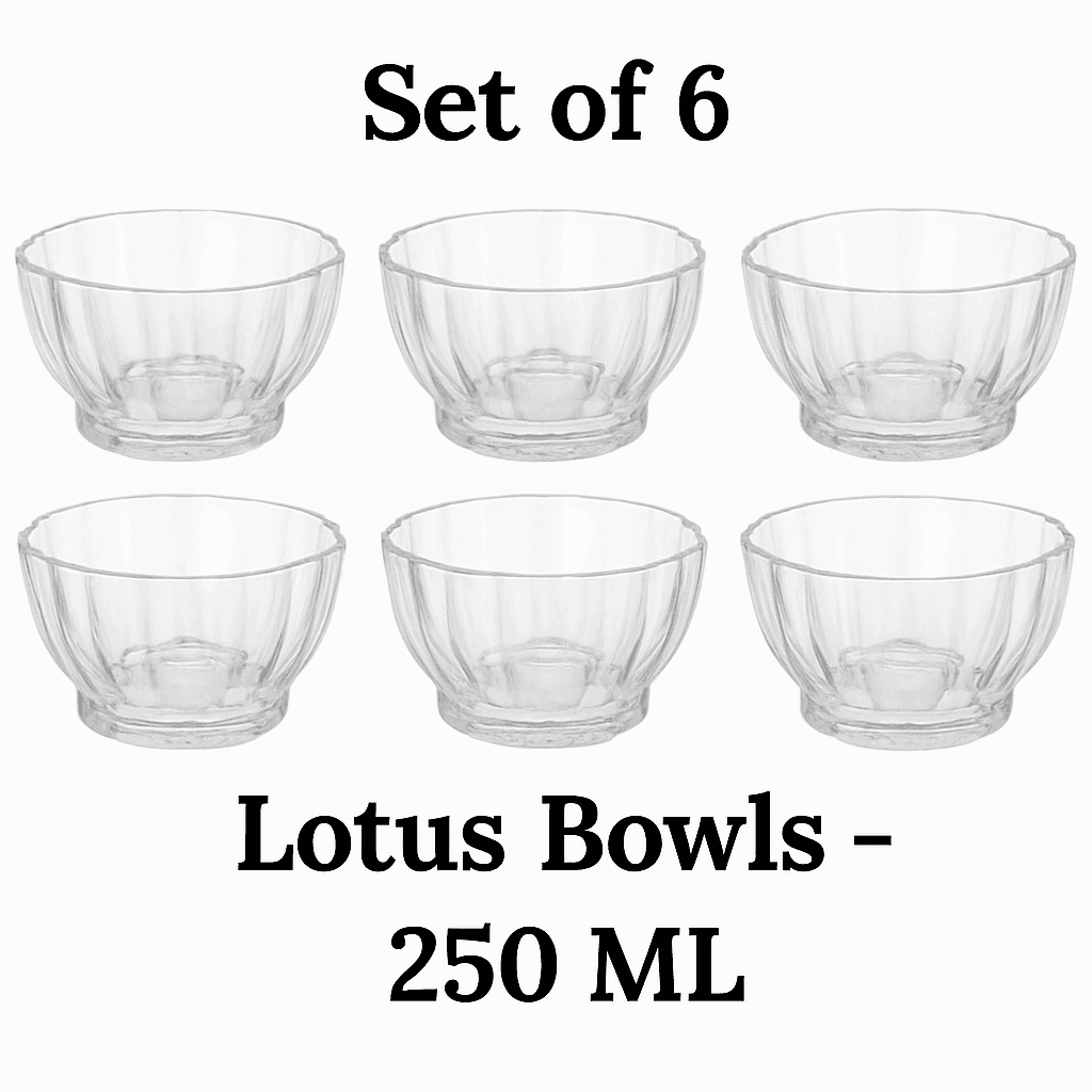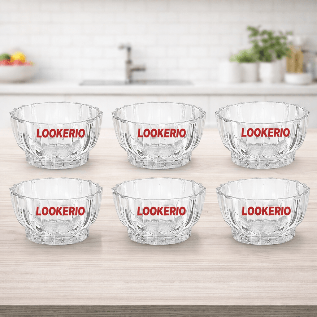 LOOKERIO Glass Bowl Set of 6 – Premium Crystal Lotus Dining Bowls