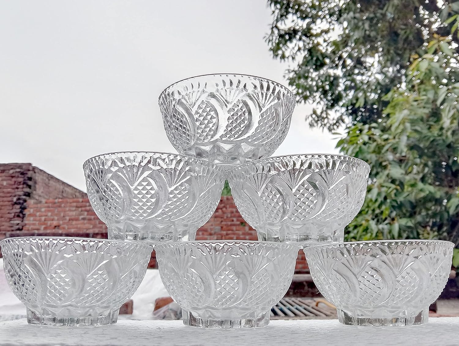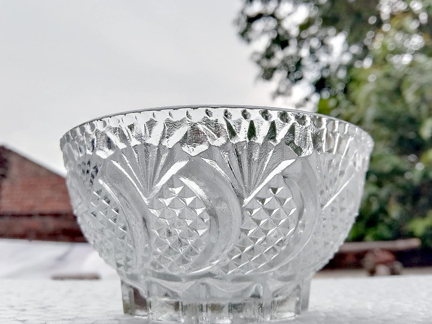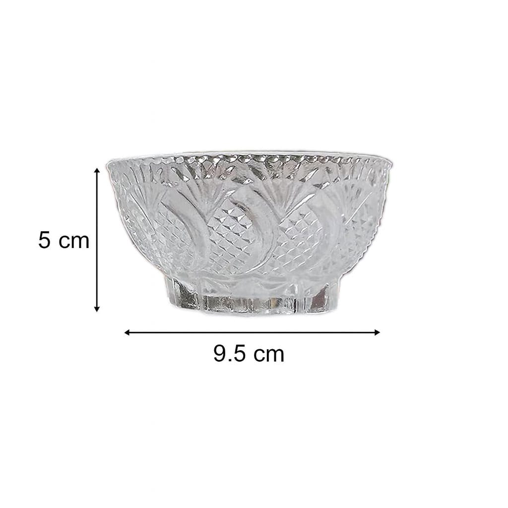 Premium Crystal Glass Bowl Set of 6 – 120 ML | Transparent Katori / Kanch Bowls for Daily Serving & Dining | Royal Flower Design